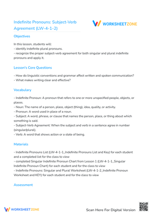 Grade 4 Indefinite Pronouns lesson plans