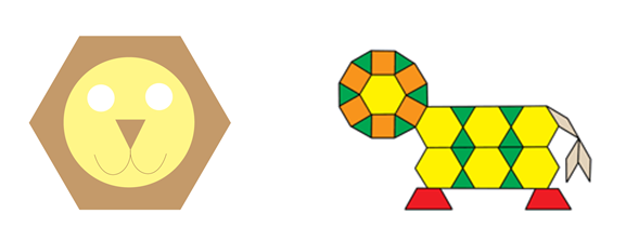 T: Extra activities for this lesson could involve describing a shape and using your sense of touch to identify it so that others can do the same. Like with their zoo animal creations, students can also combine multiple pattern blocks to create new objects.
