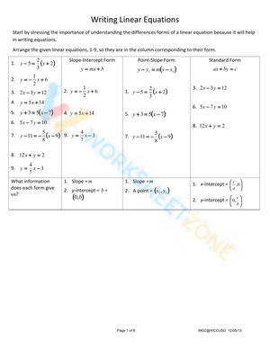 Linear Equations worksheets