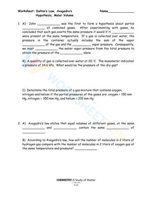 Dalton's Law Of Partial Pressure Fill in The Blanks worksheets curated by Worksheetzone