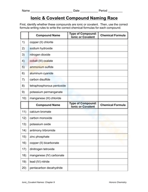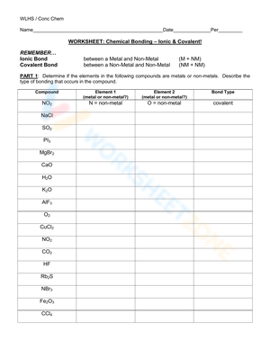 Grade 10 Chemical Bonding Ionic And Covalent Worksheets