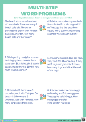 Printable Grade 2 Multi Step Word Problems Worksheets
