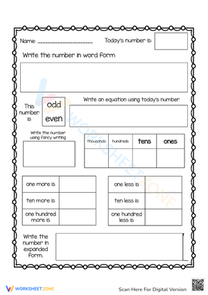 Grade 3 Number of The Day Worksheets