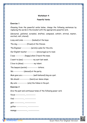 Grade 4 Verbs worksheets