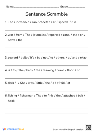 Grade 4 Sentence Scramble worksheets