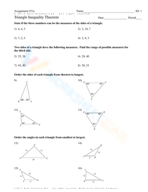 Triangle Inequality Theorem✕Isosceles And Equilateral TrianglesSurface Area of A Triangular Prism30 60 90 Triangle45 45 90 TriangleSpecial Right TrianglesTriangle Congruence ProofsPythagorean TheoremTriangle Proportionality TheoremSimialarity Of TrianglesClassifying TrianglesTriangle Sum Theorem Congruent TrianglesTrigonometry