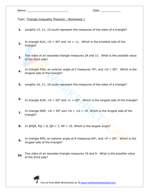 Grade 6 Triangle Inequality Theorem worksheets curated by Worksheetzone