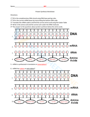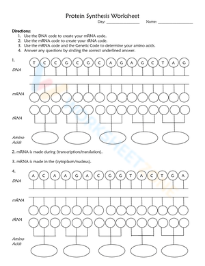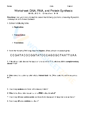 Grade 6 Protein Synthesis worksheets curated by Worksheetzone