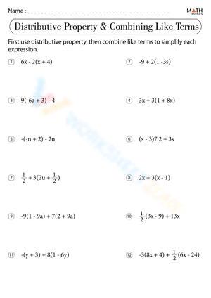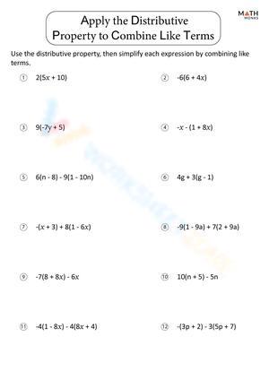 Grade 9 Combining Like Terms worksheets curated by Worksheetzone