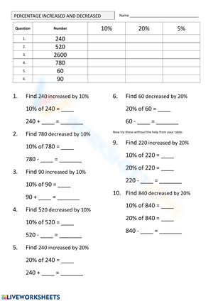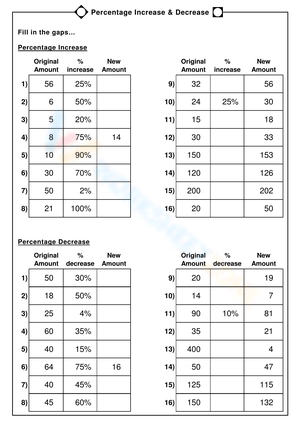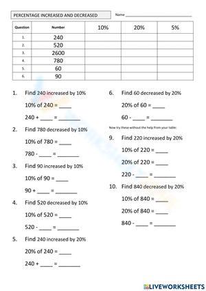 Grade 9 Increasing and Decreasing Percentages worksheets curated by Worksheetzone