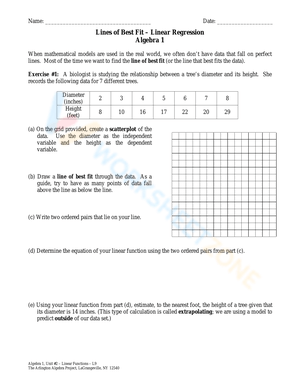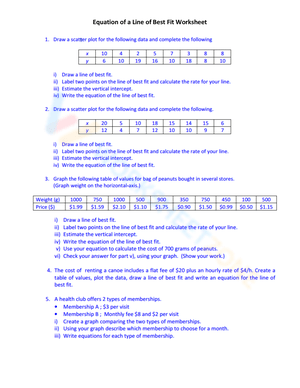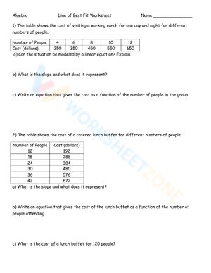 Grade 9 Line of Best Fit worksheets curated by Worksheetzone