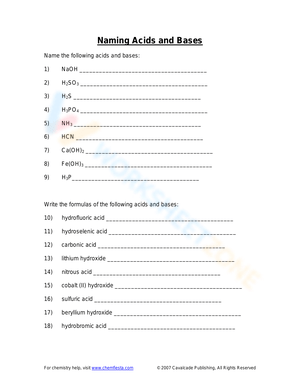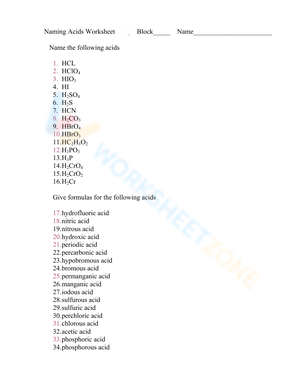 Grade 9 Naming Acids worksheets curated by Worksheetzone