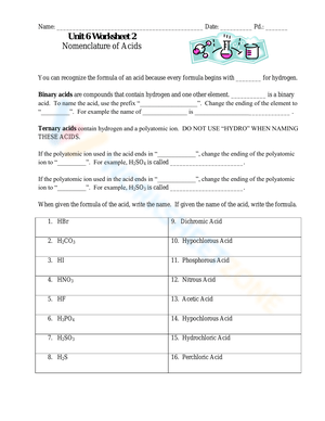 Grade 9 Naming Acids Worksheets Printable