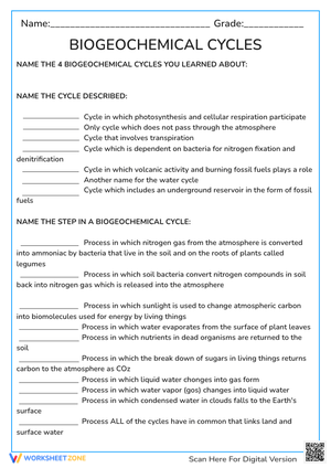Grade 9 Biogeochemical Cycles worksheets curated by Worksheetzone