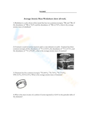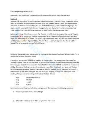 Grade 9 Calculating Average Atomic Mass worksheets curated by Worksheetzone