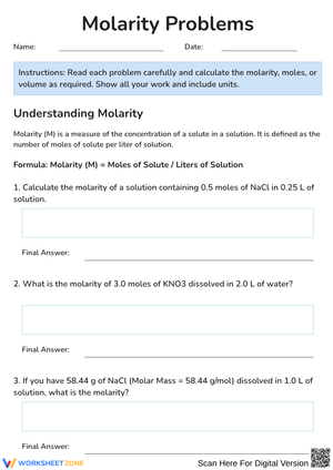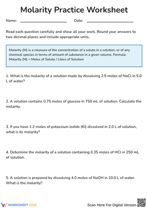 Printable Grade 9 Molarity Worksheets
