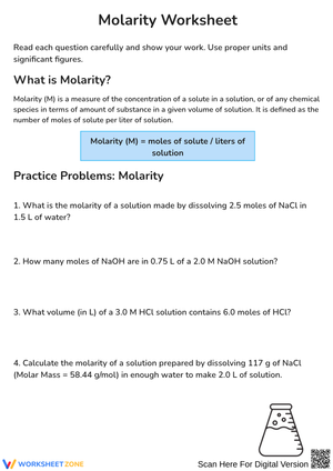 Grade 9 Molarity worksheets curated by Worksheetzone
