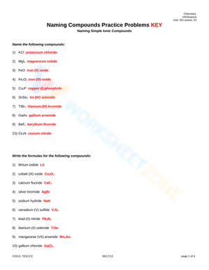 Grade 9 Naming Molecular Compounds Worksheets