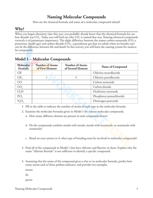 Grade 9 Naming Molecular Compounds worksheets curated by Worksheetzone
