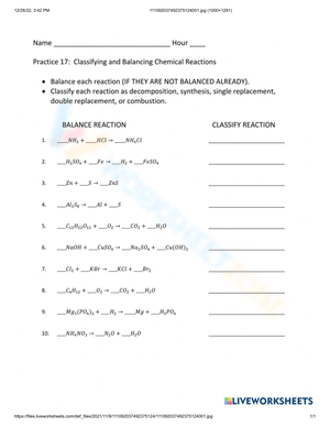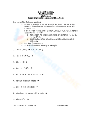 Grade 9 Single Replacement Reaction worksheets curated by Worksheetzone