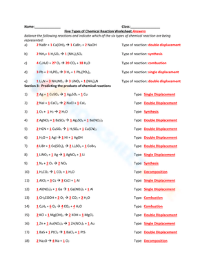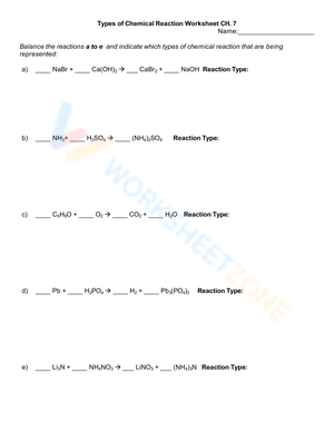 Grade 9 Types Of Reaction worksheets curated by Worksheetzone