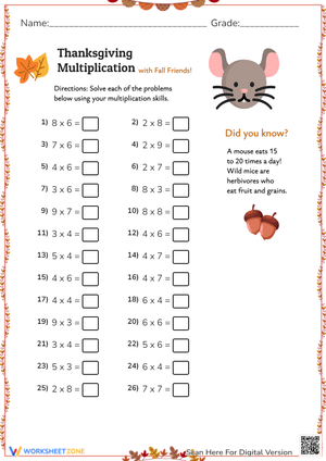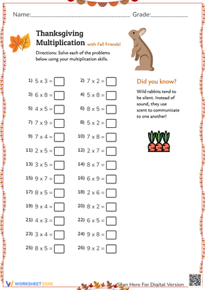 Thanksgiving multiplication worksheets give teachers a measurable and structured way to reinforce multiplication skills during the holiday season. Rather than stepping away from academic rigor during November, educators can use these seasonal resources to maintain instructional continuity while giving students a context that naturally raises engagement. Each worksheet in this collection is designed to provide clear, trackable practice that allows teachers to identify where students are in their multiplication development.