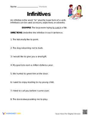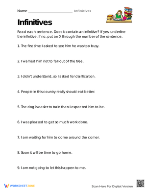Unlock the full potential of Printable Infinitives Worksheets, ideal for classroom stations, take-home learning packets, or enrichment centers. Every worksheet is carefully quality-checked, clearly structured, and thematically organized to align with your teaching goals. With built-in answer keys and easy-to-follow instructions, you can save time and reduce prep stress. Say goodbye to disorganized, low-quality downloads - Printable Infinitives Worksheets deliver a cohesive toolkit that keeps students engaged and learning on track. These ready-to-use materials help you differentiate instruction, offer targeted review, or assign meaningful extra practice with confidence. Designed for real-world classrooms and home environments alike, Printable Infinitives Worksheets empowers educators and parents to teach smarter, support student success, and stay focused on what matters most: effective learning.