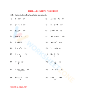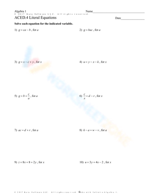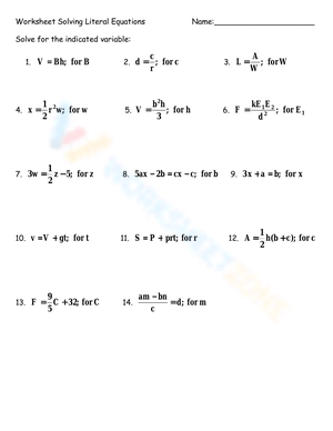 The main goal of our solving literal equations worksheets is to teach students how to rearrange formulas to solve for a specific variable. Through structured practice, learners develop the procedural accuracy needed to handle multiple variables within a single equation. This technical precision is essential for mastering physics and engineering concepts, providing students with the analytical skills needed for success in advanced STEM coursework during their academic journey.