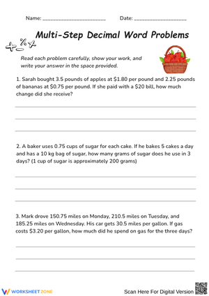 Discover the power of Decimal Word Problems Worksheets, thoughtfully crafted for teachers, homeschoolers, and parents who want purposeful, skill-building practice. Each worksheet in the collection helps reinforce key concepts, sharpen academic skills, and promote critical thinking in a structured, engaging format. Whether you’re preparing in-class activities, take-home packets, or review sessions, these resources save you planning time while boosting student confidence. Unlike random online printables, Decimal Word Problems Worksheets offer age-appropriate, standards-aligned, and print-ready materials you can trust. Organized by topic for easy access, it’s the smart way to deliver targeted practice that supports learning at every stage. Make instruction more effective and consistent with Decimal Word Problems Worksheets—your go-to resource for high-quality worksheets that work in every learning environment.