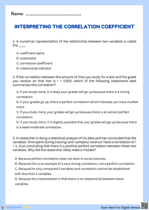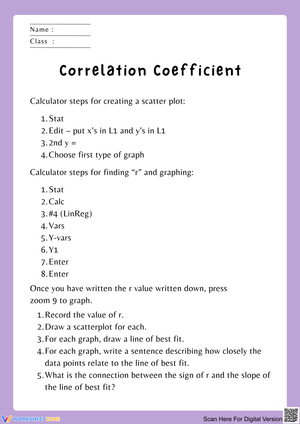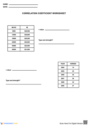 Correlation Coefficient Worksheets