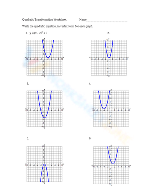 Quadratic Transformations Worksheets