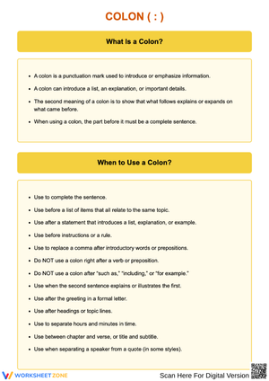 Discover how Colon Worksheets Printable can elevate learning outcomes by improving accuracy, retention, and independent thinking. Perfect for elementary teachers, special educators, tutors, and proactive parents, these Colon Worksheets Printable include thoughtfully structured worksheets that combine core practice with extension challenges. Each activity aligns directly with lesson goals and academic standards, helping students build mastery while staying engaged. Unlike generic printables, these materials are crafted to support real progress - ideal for classroom use, homework, or targeted intervention. With Colon Worksheets Printable, every practice session becomes a purposeful step toward deeper understanding and long-term success. Whether you’re reinforcing key concepts or providing extra support, these worksheets offer a balanced, effective approach that fits seamlessly into any instructional plan.