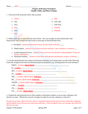 Intermolecular Forces Worksheets