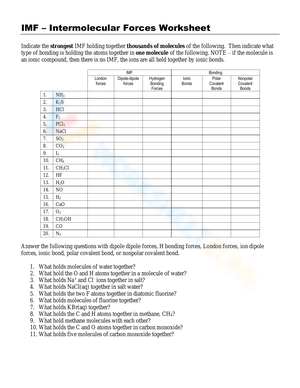 Intermolecular Forces worksheets curated by Worksheetzone