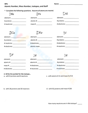 Printable Protons Neutrons And Electrons Practice Worksheets