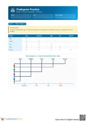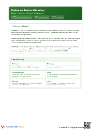 Gain instant access to Cladogram Worksheets, a trusted resource for educators and families alike. Whether you're managing a full classroom or guiding at-home learning, these Cladogram Worksheets offer structured, easy-to-follow worksheets that promote clear skill progression. Each sheet is organized by grade level and learning target, making it simple to find exactly what you need—no more wasting time on inconsistent online freebies. With built-in answer keys and enrichment prompts, these materials support effective instruction and confident learning. Cladogram Worksheets empowers you to deliver smart, focused practice that meets students where they are and helps them grow. Save time, reduce stress, and prioritize what matters most: meaningful progress and student success.