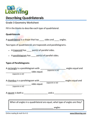 Discover how Quadrilaterals Worksheets Printable can elevate learning outcomes by improving accuracy, retention, and independent thinking. Perfect for elementary teachers, special educators, tutors, and proactive parents, these Quadrilaterals Worksheets Printable include thoughtfully structured worksheets that combine core practice with extension challenges. Each activity aligns directly with lesson goals and academic standards, helping students build mastery while staying engaged. Unlike generic printables, these materials are crafted to support real progress - ideal for classroom use, homework, or targeted intervention. With Quadrilaterals Worksheets Printable, every practice session becomes a purposeful step toward deeper understanding and long-term success. Whether you’re reinforcing key concepts or providing extra support, these worksheets offer a balanced, effective approach that fits seamlessly into any instructional plan.