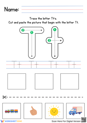 Cut and Paste Beginning Sounds Tracing Worksheets PDF