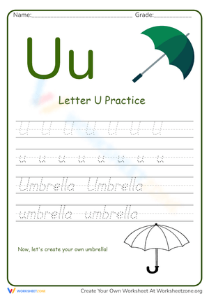 Printable Letter U Beginning Sound Tracing Worksheets