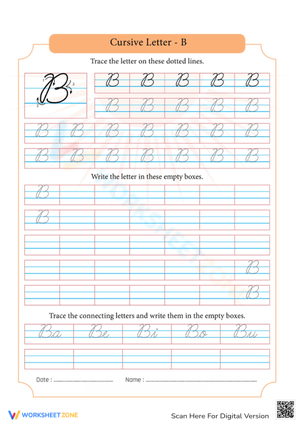 Cursive B Tracing worksheets curated by Worksheetzone