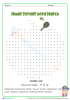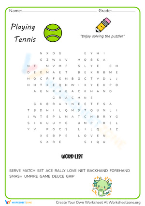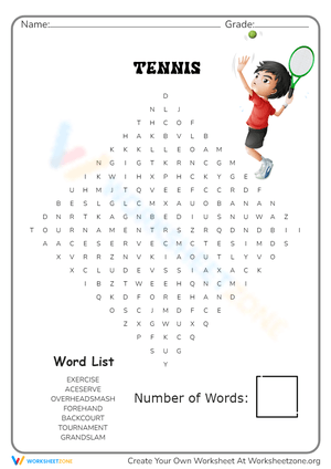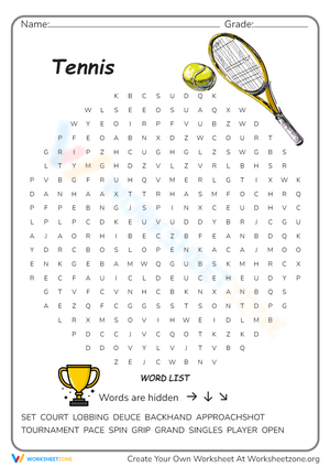 All About Tennis Word Search worksheets