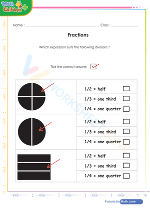 Learn about fractions: half-quater-third with this free printable math worksheet.