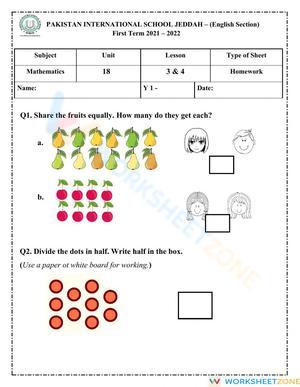 Learn about fraction math with a focus on one half! Improve your understanding and skills with this worksheet. Start fraction math today!