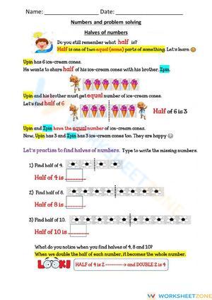 Half of numbers online activity for 1. You can do the exercises online or download the worksheet as pdf.