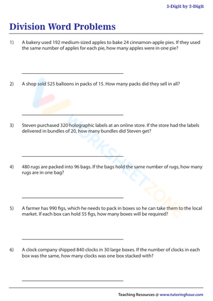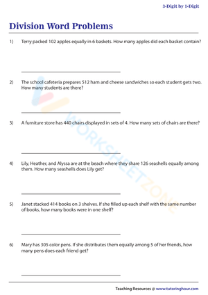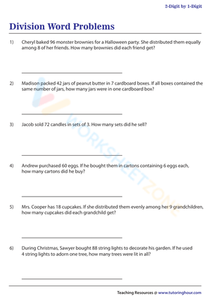 Putting division in word problem make it more interesting for students to catch up with the lesson, this collection met that demand. Students need to read the questions carefully and find the right answer for each word problem. This collection is not only develop reading skill but also improve students' dividing skill.