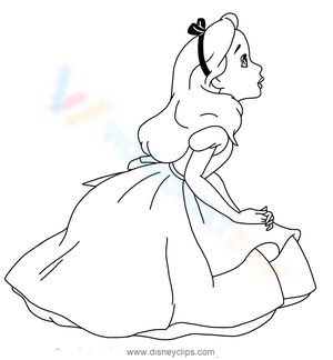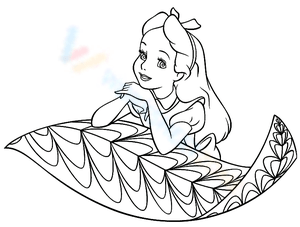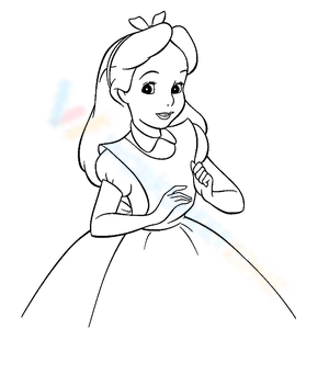 Alice is thinking about something in this picture, which makes her look so curious. Let's pain her with your favorite colors now!