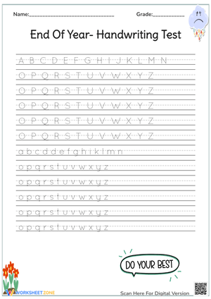Perfect for end-of-year review! This handwriting test helps kids practice uppercase and lowercase letters. A fun and engaging way to assess writing skills.
