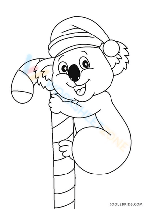 This adorable koala bear is ready for Christmas with a Santa hat and candy cane! A fun and festive coloring page for animal lovers of all ages.