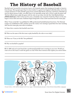 Baseball, often referred to as America's pastime, is not solely an American creation. Like many other American institutions, it has roots that extend globally. This quick reading comprehension sheet will provide your kid with an opportunity to delve into baseball's history, helping them catch up on their reading over spring break.