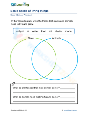 This science worksheet examines in greater depth the basic needs of plants and animals.